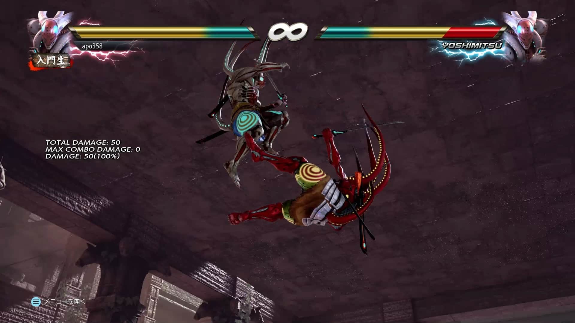 左横移動>2RPRP>禍電>ダッシュ~眉庇割り>外法閃 67ダメージ