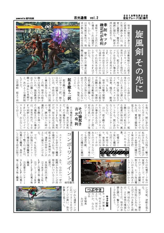 ちなみに中段の吹雪派生とは10Fほど発生の差がある(吹雪派生の方が早い)ので、完全な二択にはならない。